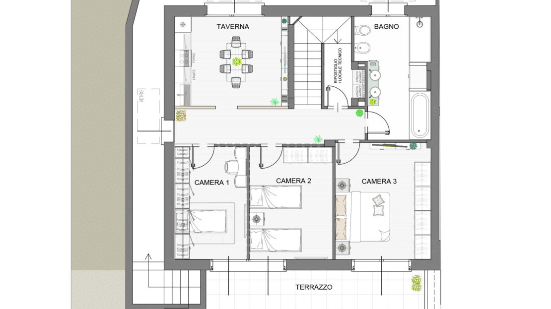 La consegna è prevista entro 2 mesi dalla firma della promessa d’acquisto, tempo necessario per la scelta e l’installazione delle piastrelle e delle porte interne.